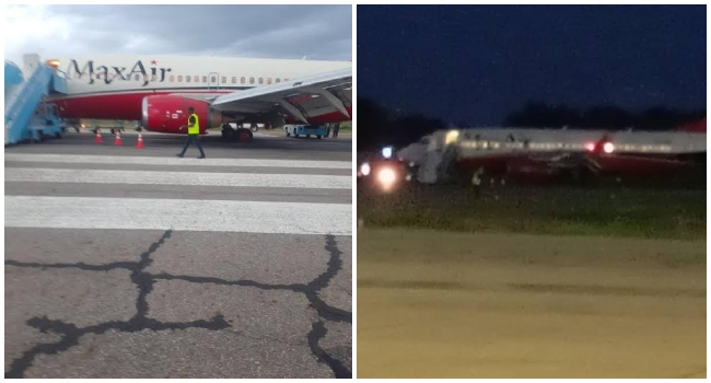 BREAKING: Max Air Plane with 126 onboard Disabled on Runway as it loses Tyres while attempting to take off from Adamawa airport
