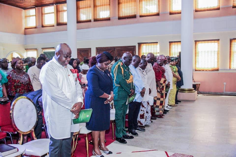Present at the service were the wife of the governor, Justice Patience Diri, the senator representing Bayelsa Central, Dr. Konbowei Benson, member representing Sagbama/Ekeremor Federal Constituency in the House of Representatives, Dr. Fred Agbedi, Speaker of the House of Assembly, Rt. Hon. Abraham Ingobere and other state legislators as well as the Chief Judge, Justice Matilda Ayemieye.
