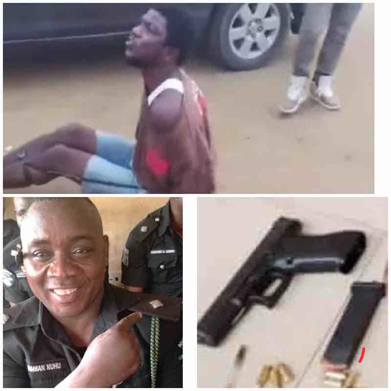 Aliyu Shaba, who heard the gunshot on Sunday evening 26th of April when the incident occurred rushed down, ordered that the ASP be tactically disarmed, handcuffed him, chained his legs as well, and detained all of them.